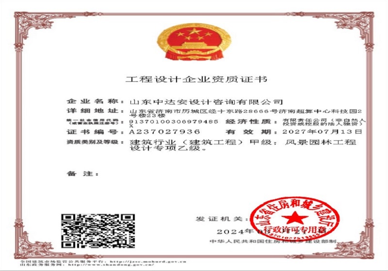 建筑行業(yè)(建筑工程)甲級、風(fēng)景園林工程設(shè)計專項乙級