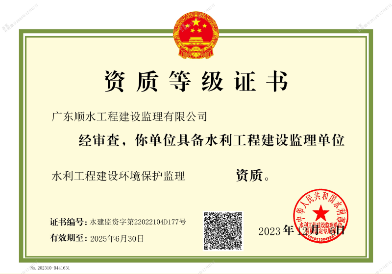 廣東省建設(shè)項(xiàng)目工程環(huán)境監(jiān)理能力評(píng)價(jià)甲級(jí)